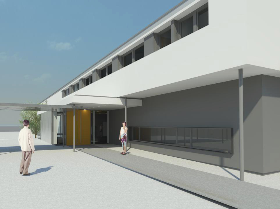 Bei einer Vorstellung der Pläne erläuterten die Architekten die geplante Gestaltung. Die Gebäude werden, nach den derzeitigen Vorschlägen in weiß und grau gehalten. In die grauen Fassatenteile sollen in den Fensterfronten einzelne Farbflächen in leuchtenden Orangetönen eingestreut werden. Vom Elternbeirat wurde angeregt, weniger grau oder aber auch eine hellere Farbgebung zu prüfen, damit nicht der Eindruck eines tristen Bürogebäudes entsteht. Die Fassade einer Grundschule sollte auf alle Fälle hell und freundlich wirken. Das Architekturbüro hat uns freundlicherweise Bilder zur Verfügung gestellt, die die zukünftige Ansicht illustrieren. Die Bauarbeiten bringen auch mit sich, dass die Dächer von Bau I und Bau II eneuert werden. Wie vor 50 Jahren bei derartigen Gebäuden üblich, wurden die Dächer mit Asbestzementplatten gedeckt. Auch in Teilen der alten Außenfassade wurden asbesthaltige Materialien verbaut. Es ist geplant, dass diese Bauteile nächstes Jahr während der Schulferien unter den notwendigen Sicherheitsvorkehrungen demontiert werden.